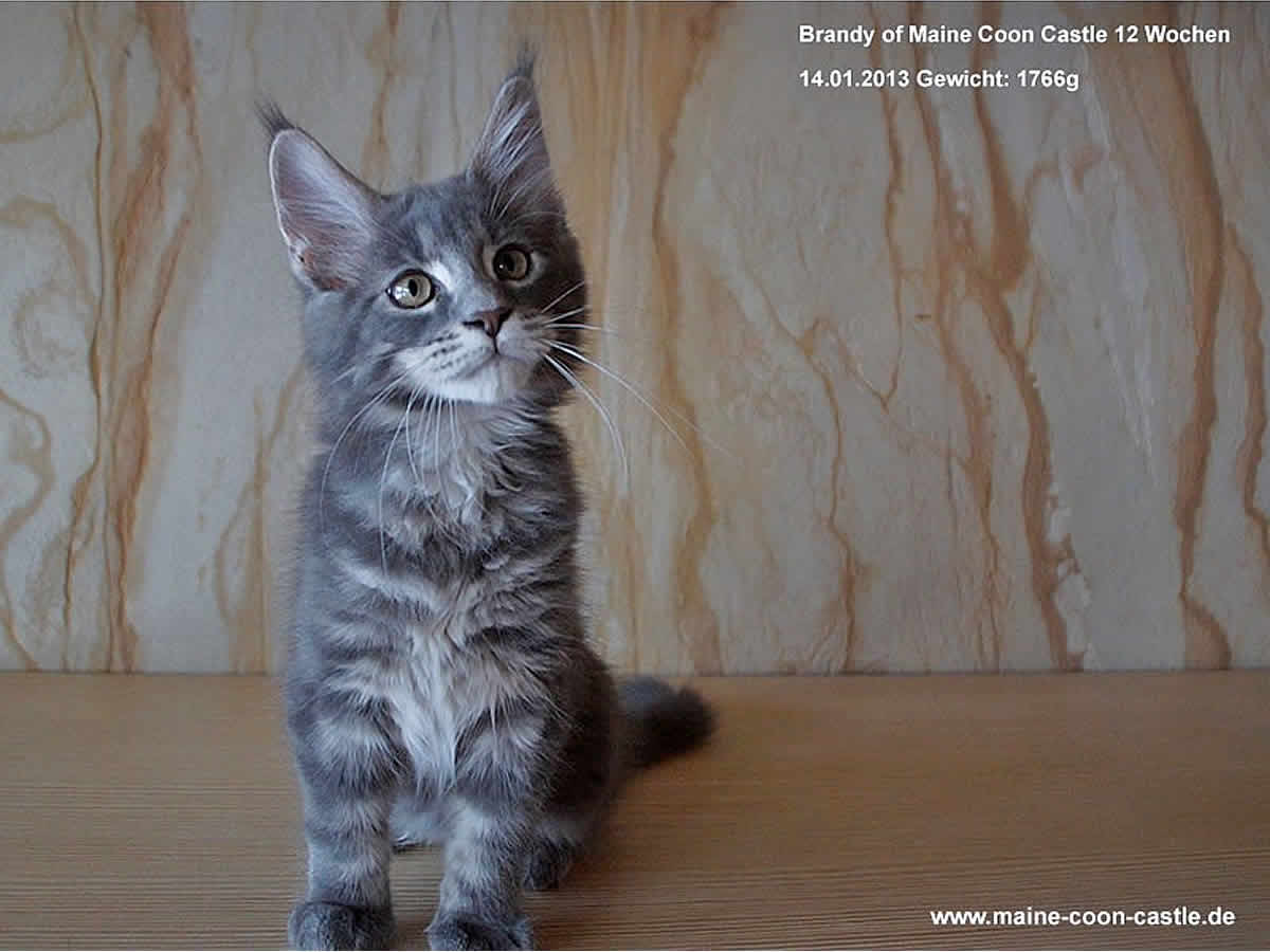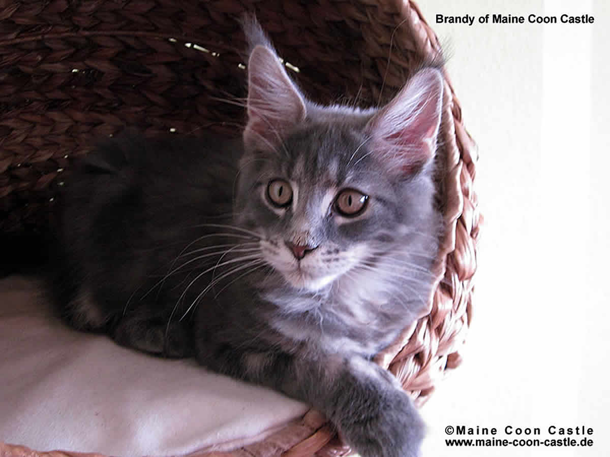 Brandy ist ein Traum auf vier Pfoten! Ein exzellentes Profil mit toller Knubbelschnute und ein Blick zum Dahinschmelzen. Der gestreckte Körper auf hohen, starken Pfoten ist begeisternd. Brandy hat sich zu einer typvollen Maine Coon Dame entwickelt. Sie ist introvertiert wie ihre Mutter, durchsetzungsstark in der Gruppe, sehr anhänglich und verschmust.