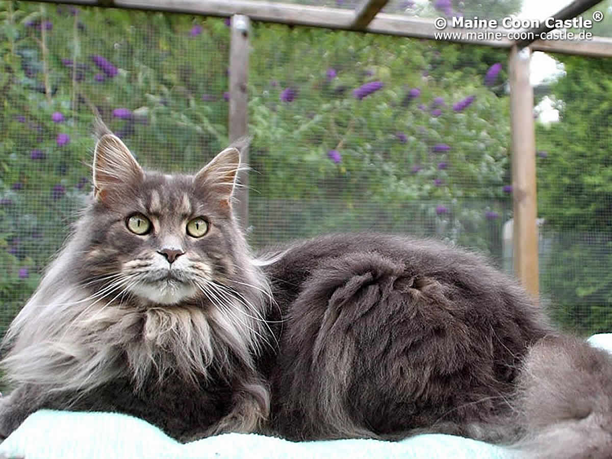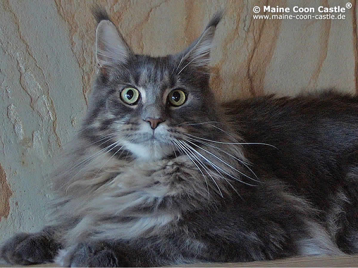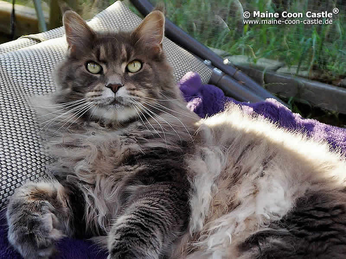 Die Maine Coon Katze, Weltchampion Brandy of Maine Coon Castle, ist eine liebevolle und aufmerksame Mutter. Sie hat uns bereits sehr typvolle Maine Coon Babys geschenkt.