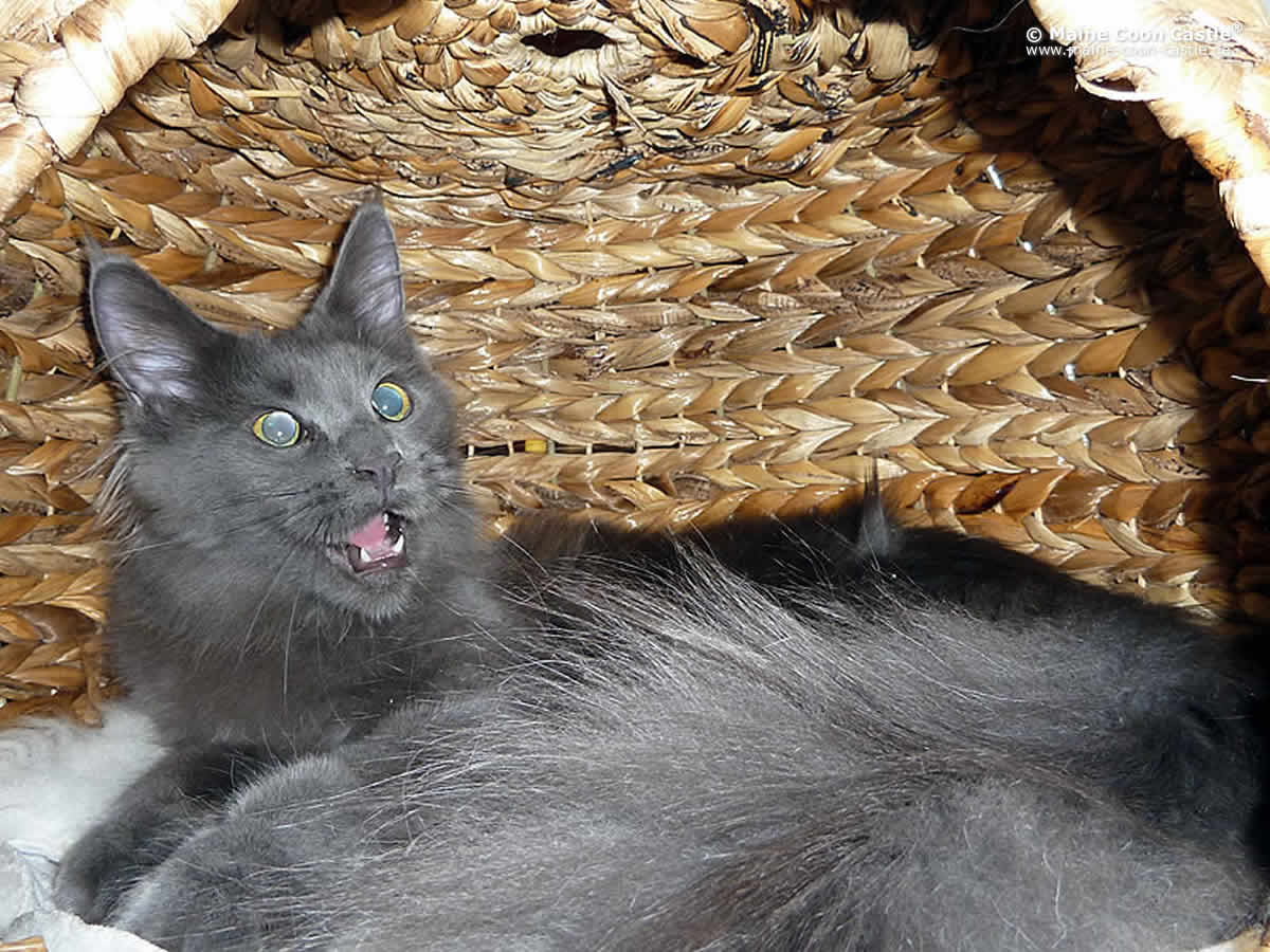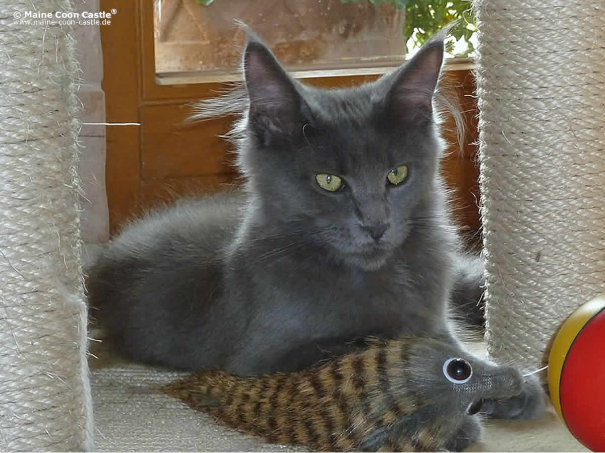 Lea ist eine „Papakatze“ und hört aufs Wort. Sie hat eine ausgeprägte Mimik entwickelt und „redet“ mit einem umfangreichen Wortschatz. Ein einfaches Miau habe ich von ihr noch nie gehört. Lea hat sich zu einer sehr dominanten Maine-Coon-Katze entwickelt, die die Gruppe deutlich anführt. Als Tante Lea kümmert sie sich rührend mit den jeweiligen Müttern um die Maine Coon Kitten und hat einen fast schon übertriebenen Beschützerinstinkt.