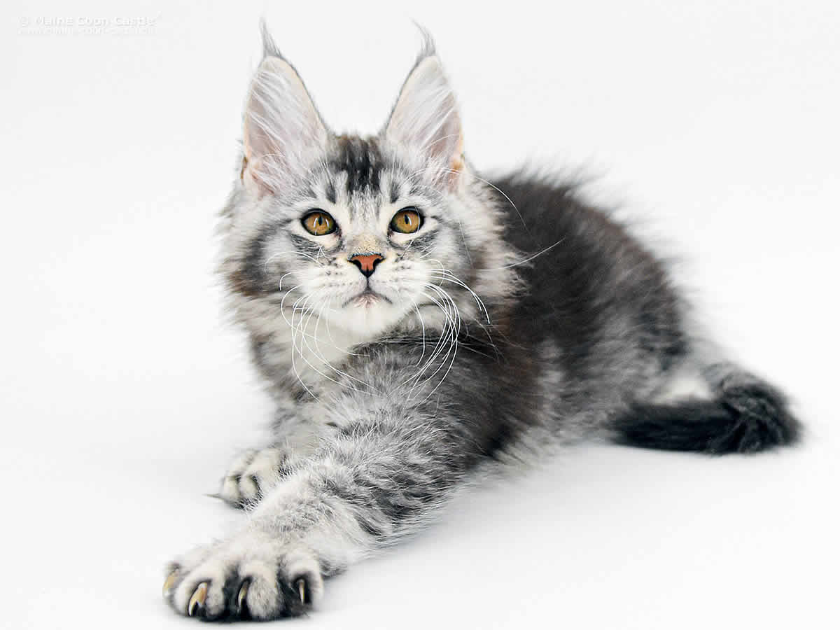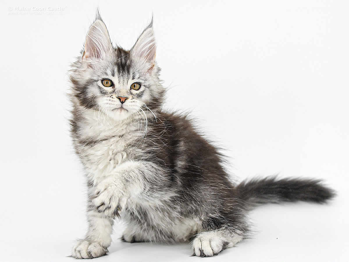 Franny ist das Püppchen des Wurfes. Das Maine Coon Baby Franny ist ausserordentlich verspielt. Alles, wirklich alles wird zum Spielzeug umfunktioniert. Franny kann sich beim Kuscheln völlig fallen lassen. Franny ist eine „Seelenkatze“.