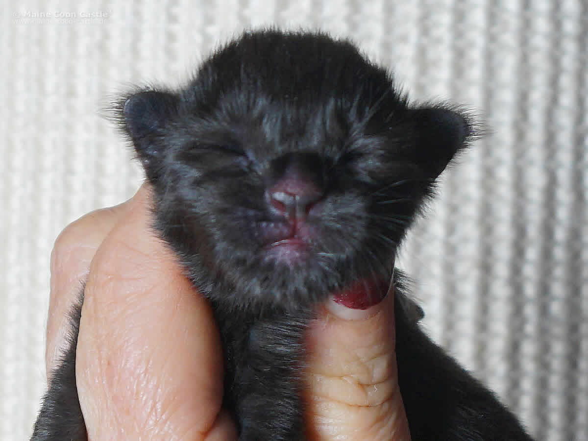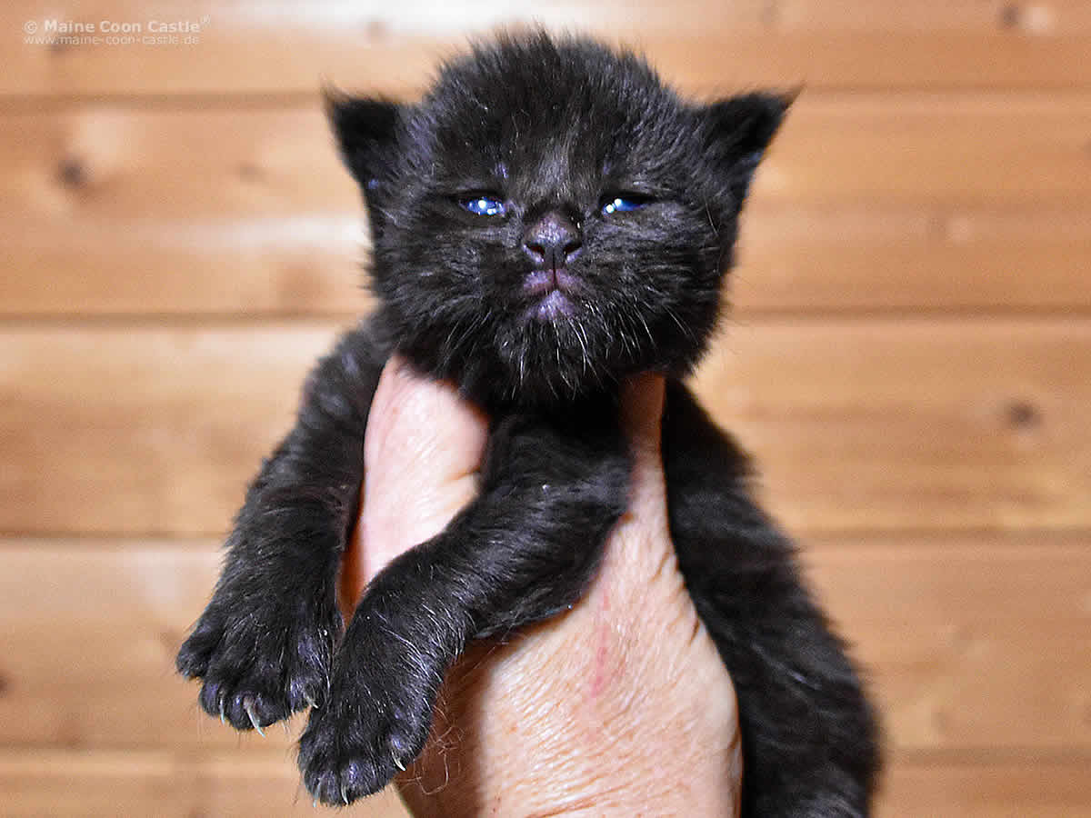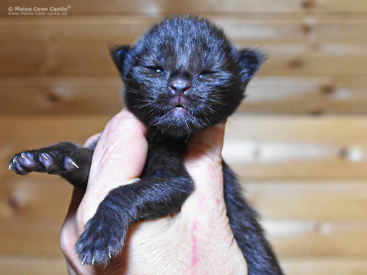 Das schwarze Maine Coon Baby Gordie of Maine Coon Castle ist am 27.02.2022 mit einem Gewicht von 2455 g nach Rüsselsheim in Hessen umgezogen.