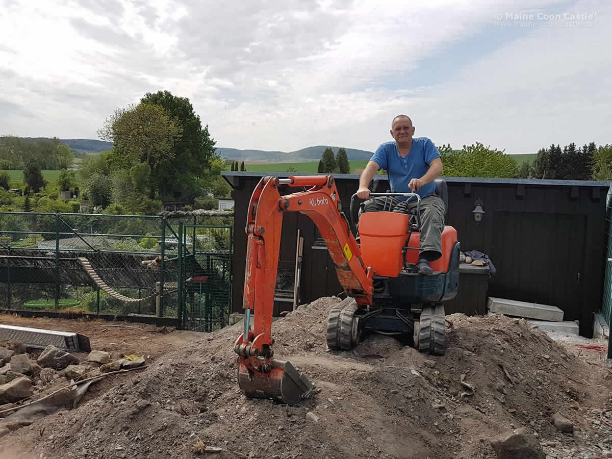 Uns war bewusst, dass wir mehr Platz benötigen, um diesen Plan umzusetzen. Bereits die Art der Maine Coon Haltung ist wesentlicher Bestandteil der Sozialisierung. Aber … wenn schon bauen, dann richtig. Es sollte viel Platz für die artgerechte Haltung der Gruppe der Maine Coon Kater sein und ein Ort, an dem sich auch unsere Besucher und natürlich wir selbst wohlfühlen.