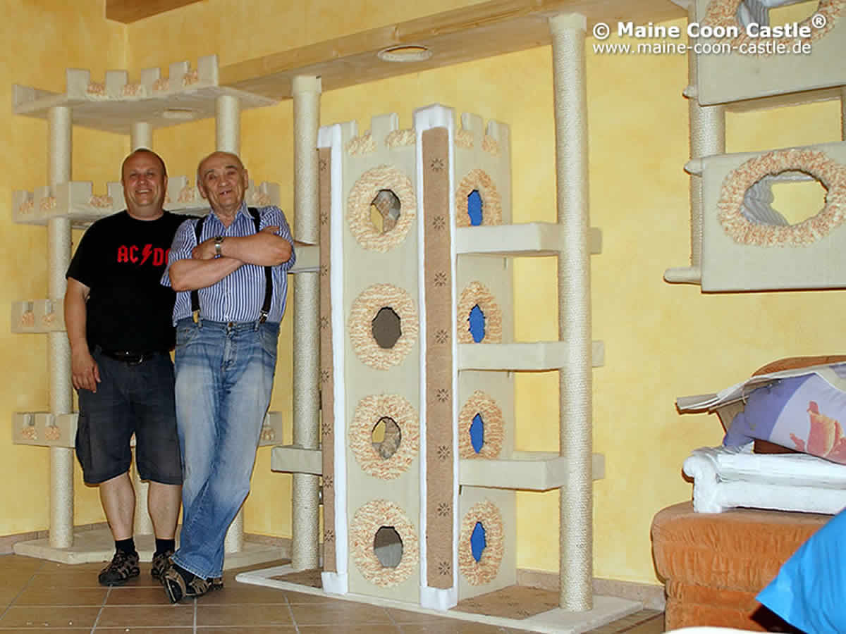 Seit 20.10.2011 sind unsere Katzen in ihr Maine Coon Castle eingezogen und fühlen sich sehr wohl. Wir ahnten damals nicht, dass wir Baulöwen werden, um den stetig steigenden Anforderungen unserer CastleGirls und CastleBoys gerecht werden zu können. Früher hatten wir ein Haus. Heute „dürfen“ wir bei unseren Maine Coon Katzen wohnen. Wir meinen, die Symbiose zwischen Katze und Mensch ist uns gelungen.