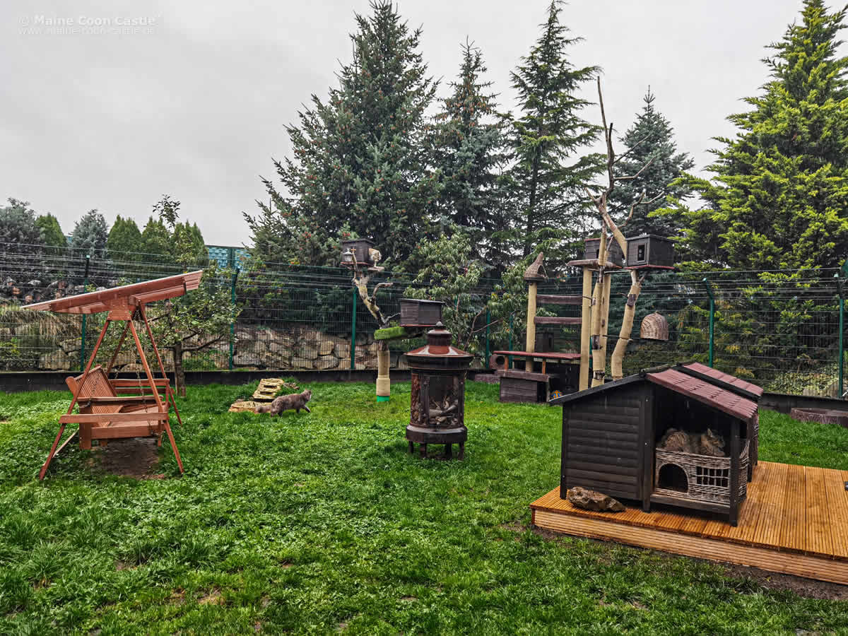 Blick zum Katzengehege der Maine Coon Kater
