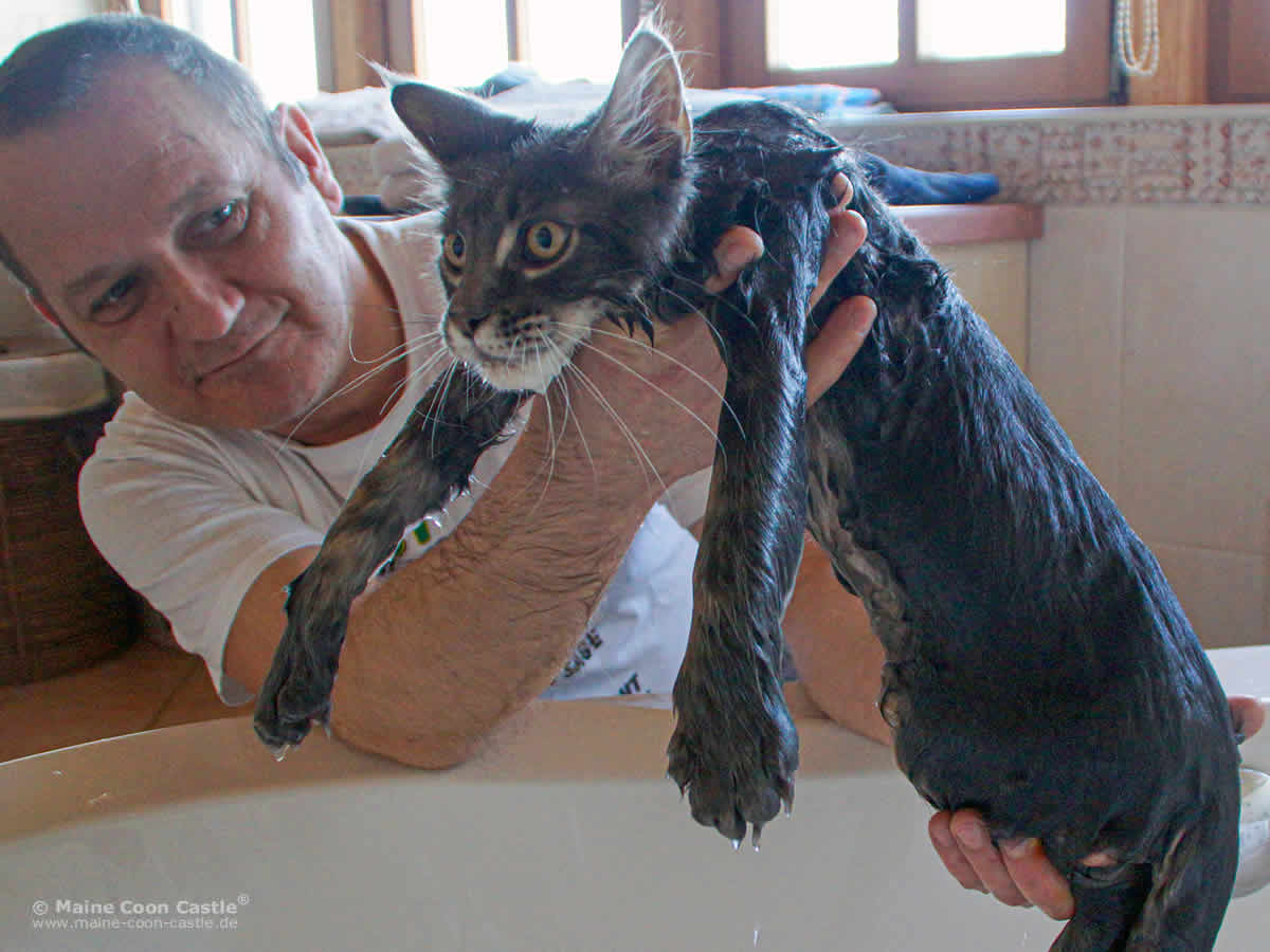 Eine Katzenausstellung ist auch eine Schönheitskonkurrenz. Wir haben unsere Katzen gebadet und aufgehübscht.