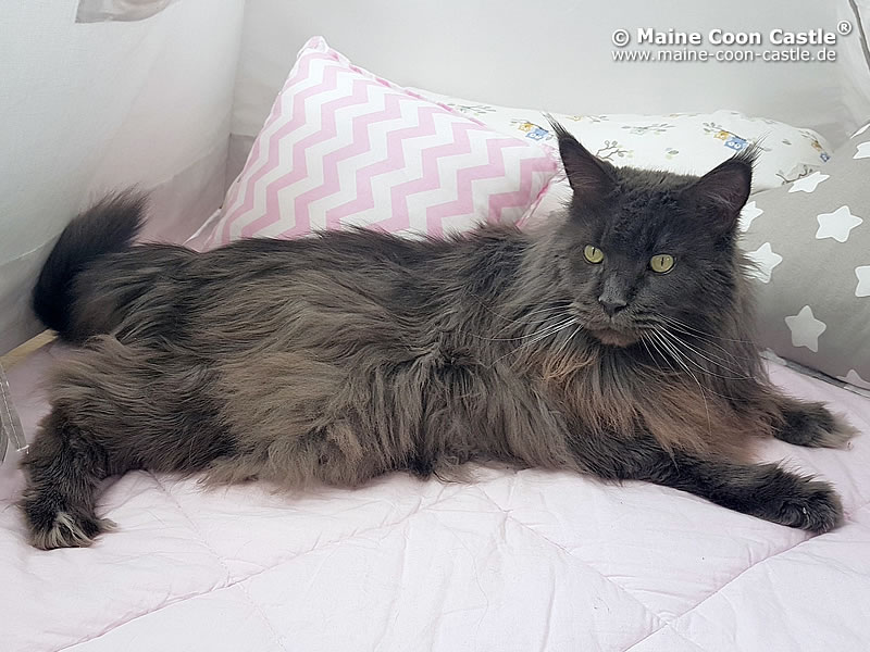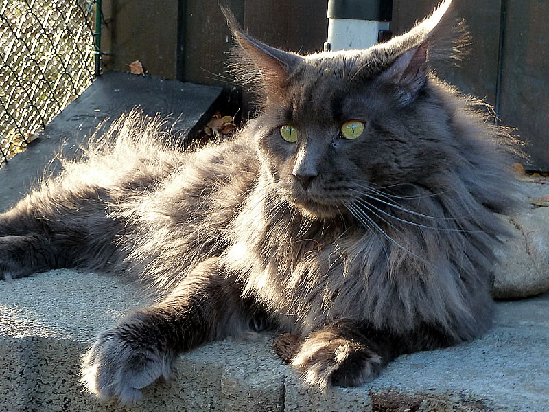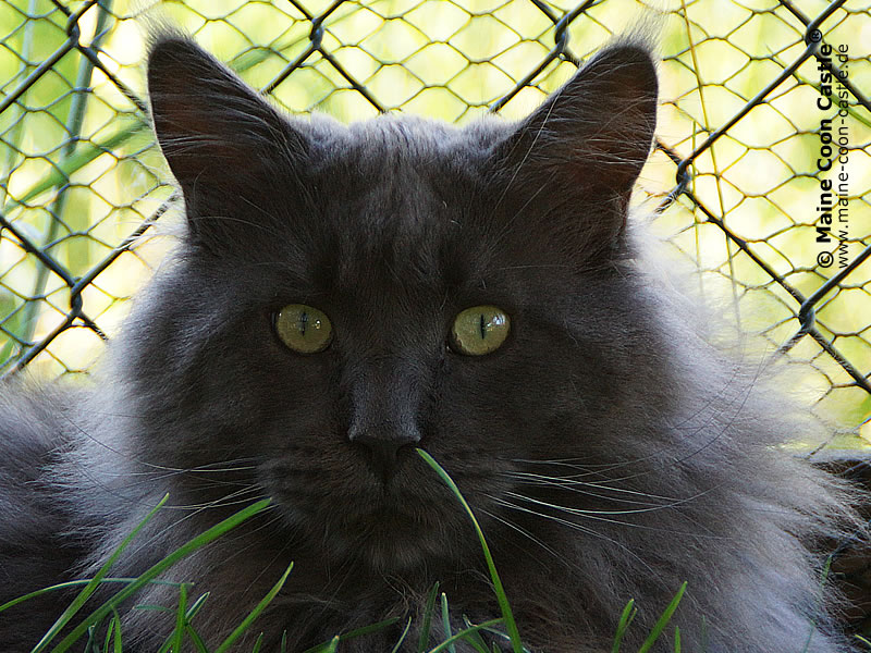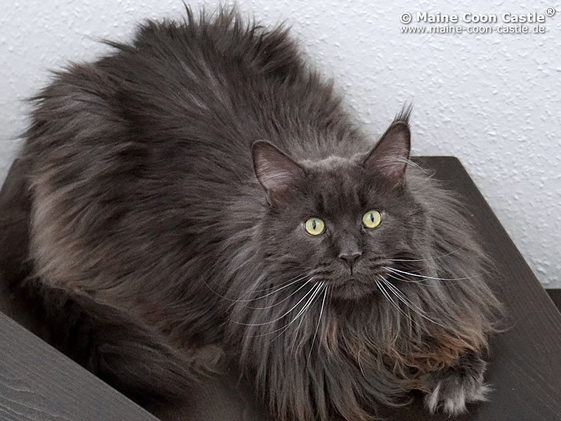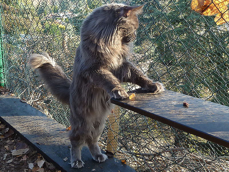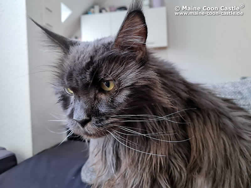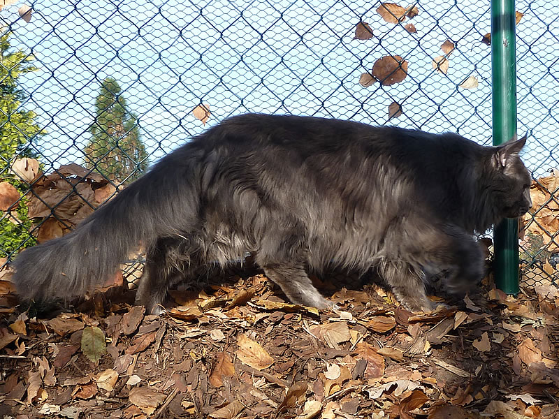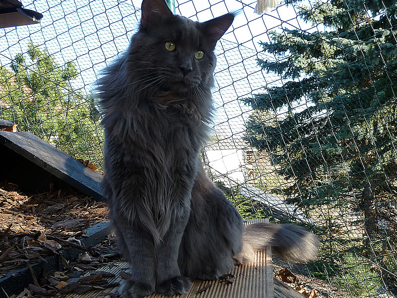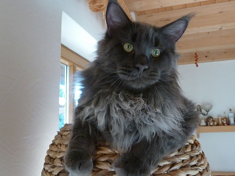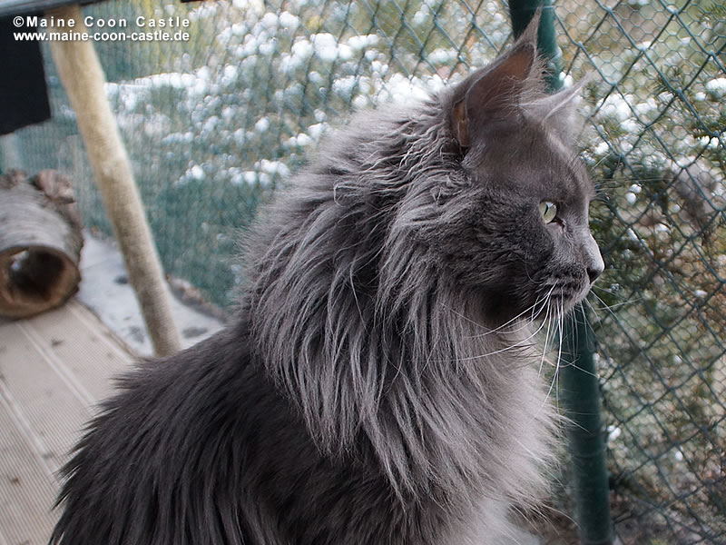LEO ist der liebenswerte Pascha der Cattery Maine Coon Castle. Er hat die ganze Truppe unter Kontrolle und durfte sich in seiner Jugend im ganzen Haus frei bewegen. Leo erzählt sehr viel und lautstark. King LEO hat sich zu einem sehr dominanten Maine Coon Kater entwickelt, der sein Revier markiert und verteidigt. Mit unseren alteingesessenen Kastraten gab es zunehmend ernsthafte Auseinandersetzungen. Wir haben uns deshalb entschlossen, unseren Zuchtkatzen ein Katzenhaus mit Freilauf zu bauen. Seit Oktober 2011 sind King Leo und „seine“ Mädchen umgezogen und alle fühlen sich sehr wohl. King LEO hat sich zu unserem absoluten Traumkater entwickelt.