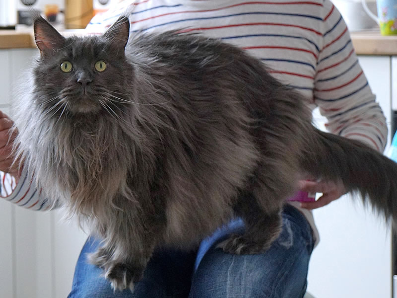 27.08.2013: Mein Blaubär, der Maine-Coon-Kater King Leo, wurde heute kastriert. Diese Entscheidung ist mir sehr schwergefallen. Mit King Leo of Miriquidi Coons fing alles an. Durch diesen wunderschönen, großen Kater wurden wir zur Maine-Coon-Zucht inspiriert. Als Maine Coon Züchter kann ich die Ergebnisse des letzten HD Röntgen natürlich nicht ignorieren – Zuchtausschluss! Lieber Leo, auch ohne Glockenspiel bist du ein PRACHTEXEMPLAR.