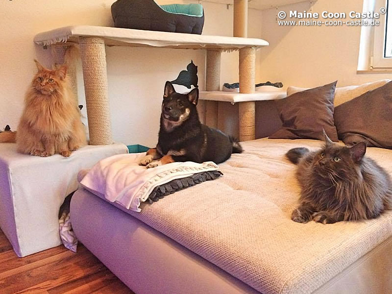22.10.2017 Update: King Leo und Campino sind ein Dreamteam. Sie leben glücklich bei Aline und ihrer Familie. King Leo und Campino haben eine kleine zweibeinige Freundin bekommen. Nun nehmen die großen Jungens ihre Aufgabe als Beschützer, Kuscheltier und Kopfkissen sehr ernst. Es ist wunderschön anzuschauen, wie geduldig und liebevoll Maine-Coon-Katzen mit Babys bzw. Kleinkindern umgehen.