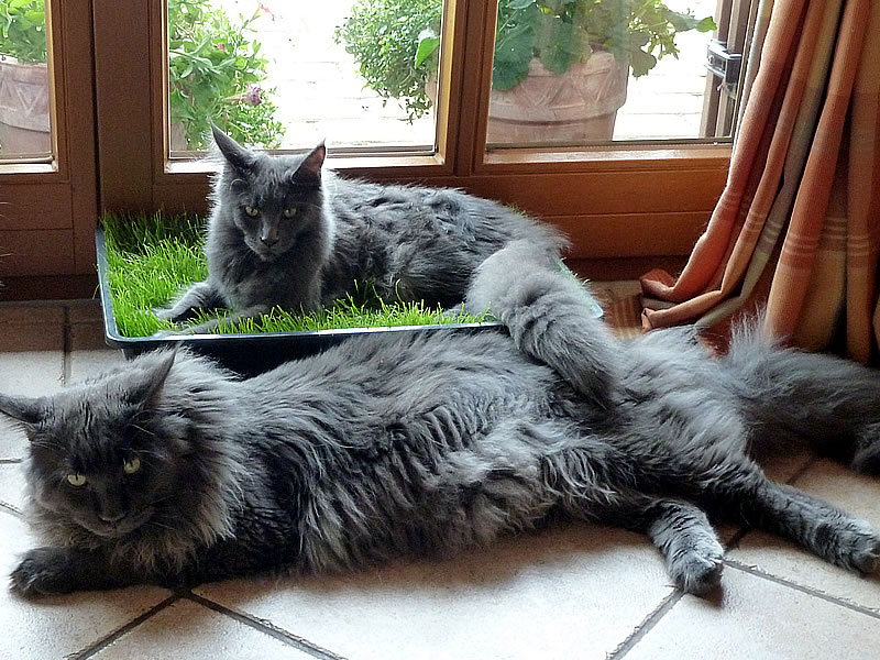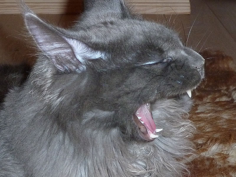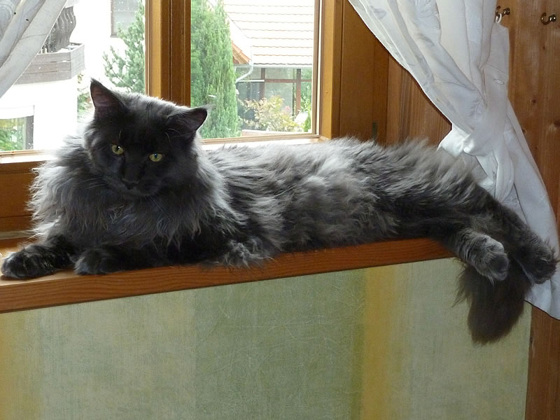 Leo war kein Draufgänger, er war die Ruhe in Person – selbst dann, wenn sein tierischer Freund und Kumpel Campino of Maine Coon Castle versuchte den Chef zu markieren. Und ganz wichtig: von 11:00-17:00Uhr ist Mittagsschlaf angesagt – niemand konnte ihn stören. Ich könnte noch mehr schreiben, all die witzigen Situationen erzählen, noch mehr liebevolle Eigenheiten von Leo aufzählen, aber dies würde den Rahmen sprengen.