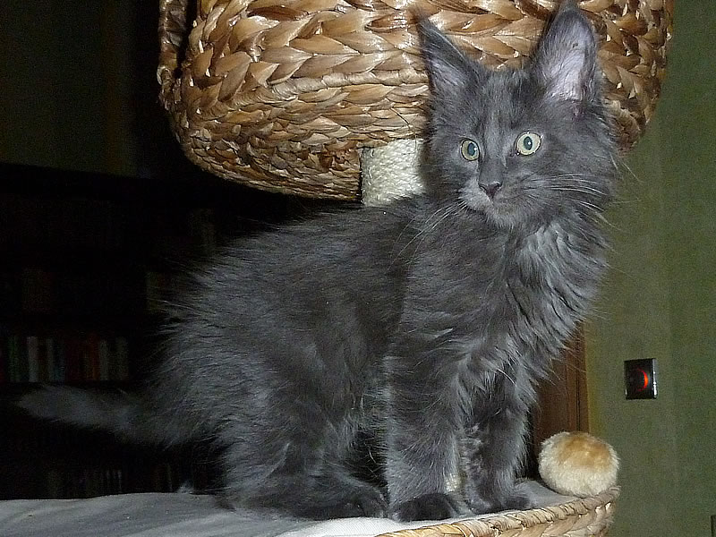 21.12.2013: King Leo sollte als Kastrat mit in die Gruppe der Maine-Coon-Katzen integriert werden. Die potenten Maine Coon Queens waren sehr aggressiv und Leo hat sich nicht gewehrt. Leo hat sich prächtig mit den Maine-Coon-Kitten verstanden, aber die Mütter haben ihm doch sehr zugesetzt. Ein einsames Leben in meinem Büro wollte ich meinem Blaubären nicht zumuten. Die Entscheidung ist mir sehr schwergefallen und ich habe vieles probiert … Leo ist heute mit Campino ausgezogen. Beide verstehen sich sehr gut. Campino hat schon als kleines Maine-Coon-Kitten seinen Onkel Leo geliebt und mit ihm gespielt.
