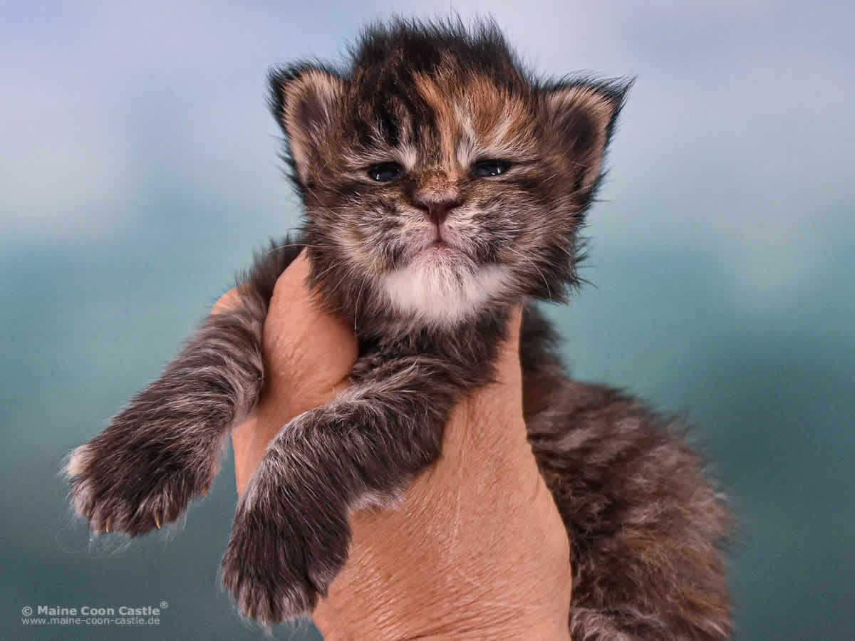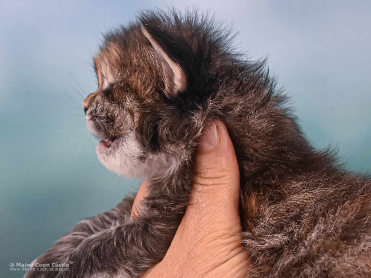 Das Maine Coon Kitten Van Anett of Maine Coon Castle ist das Ergebnis langer, behutsamer und geprüfter Linienzucht von Maine Coon Castle.