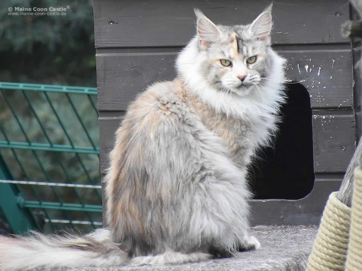 Eine Prinzessin ist in das CastleLand eingezogen. Unsere Züchterfreundin Martina Jahnke (Maine Coon Cats of Bloomingtree) hat die Maine-Coon-Katze Vendetta in unsere Obhut übergeben. Ein wunderschönes Mädel! Vendetta (Blutrache) klingt uns etwas zu martialisch für eine so wunderbare Maine-Coon-Katze. Wir werden sie Daisy rufen.