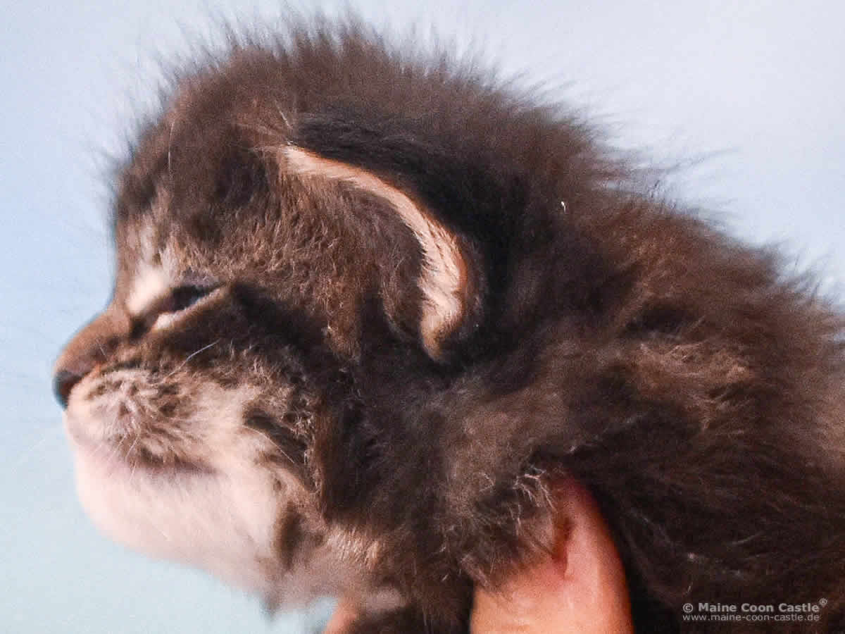 Ula of Maine Coon Castle ist ein aufgeweckter und sehr anhänglicher Sonnenschein. Ich danke meiner „fetten“ Ivette für dieses Geschenk. Die Maine Coon Katze entspricht derzeit dem moderat halb modernen Typ der Maine Coon. Sie zeigt in Ihrer Entwicklung die Tendenz zum alten Typ, entsprechend der Zuchtlinie ihres Vaters Lion. Ula ist ein sehr typvolles Mädchen gemäß dem Rassestandard. Die Zusammenführung der Maine Coon Zuchtlinien von Lion und Ivette zeigen das gewünschte Ergebnis.