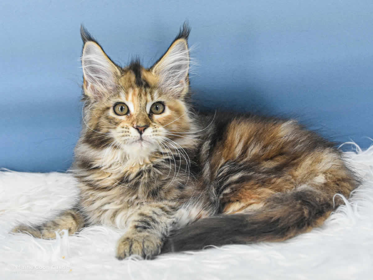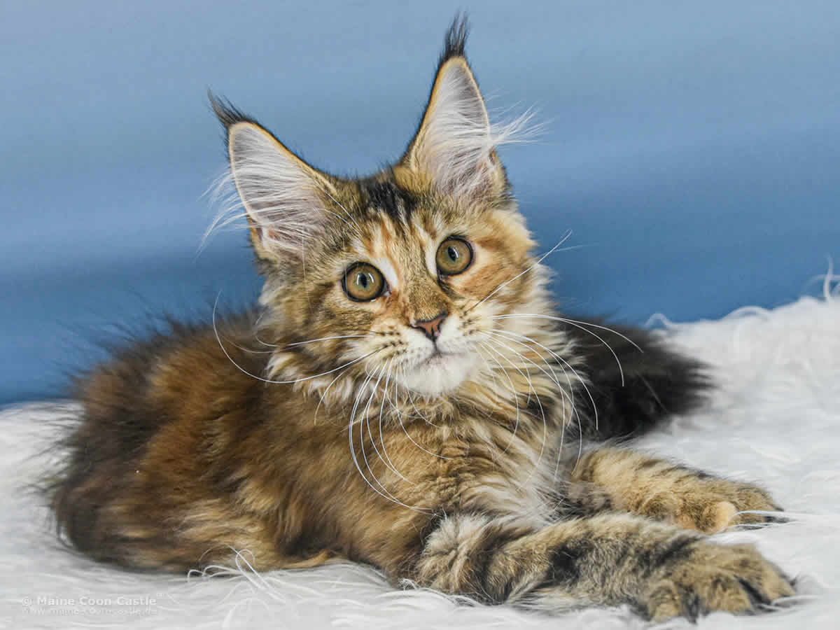 Die Maine Coon Katze Valentina ist das Ergebnis jahrelanger, behutsamer und geprüfter Linienzucht von Maine Coon Castle und wird diese wertvolle Blutlinie als Zuchtkatze fortführen.