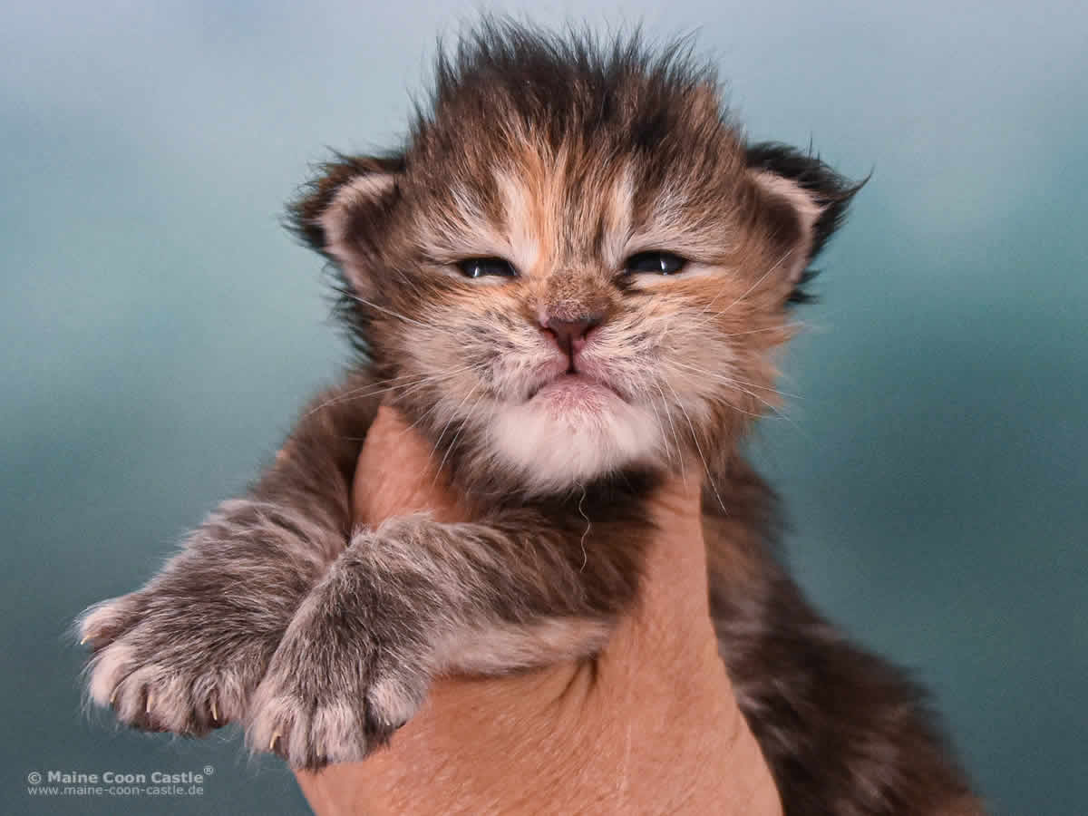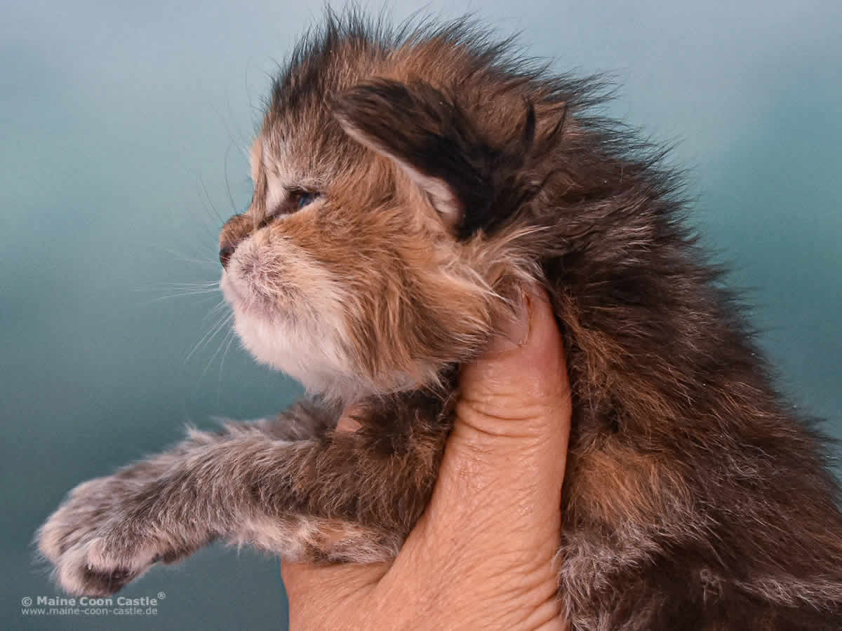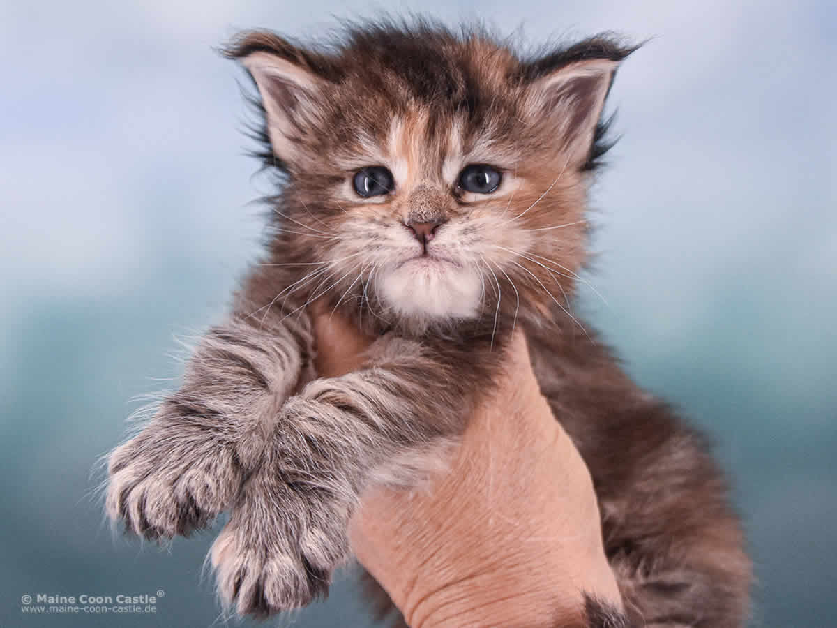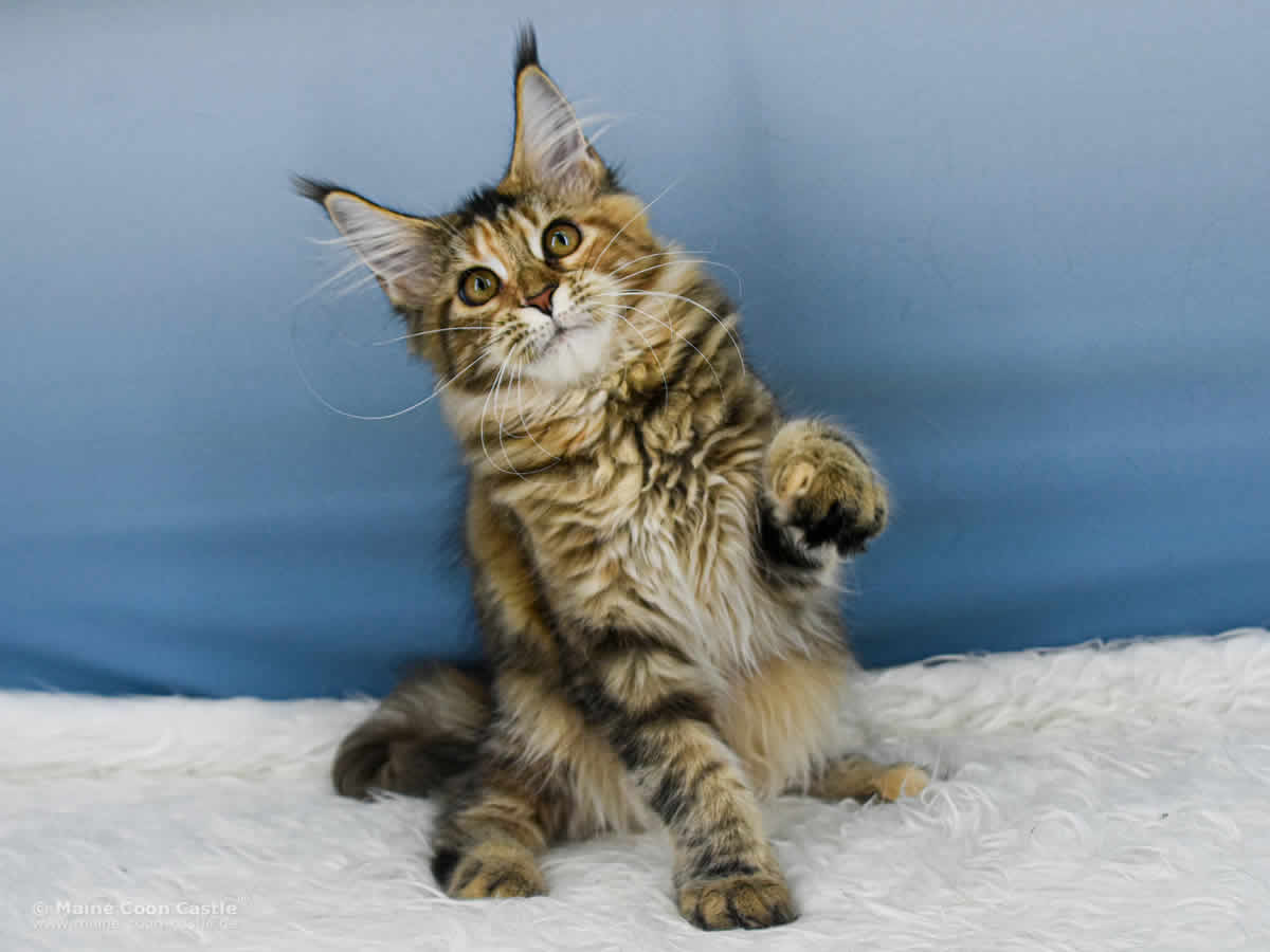 Der Adel des CastleLandes – Valentina of Maine Coon Castle. Die Maine Coon Katze entspricht makellos dem alten Typ der Katzenrasse Maine Coon. Valentina ist introvertiert und hat den Habitus einer Königin. Die gezirkelten Bewegungen und die gestelzte Gestik der Kleinen bringen mich oft zum Lachen. Streichle mich, spiel mit mir, aber bring mein wunderbares Kleid nicht durcheinander.