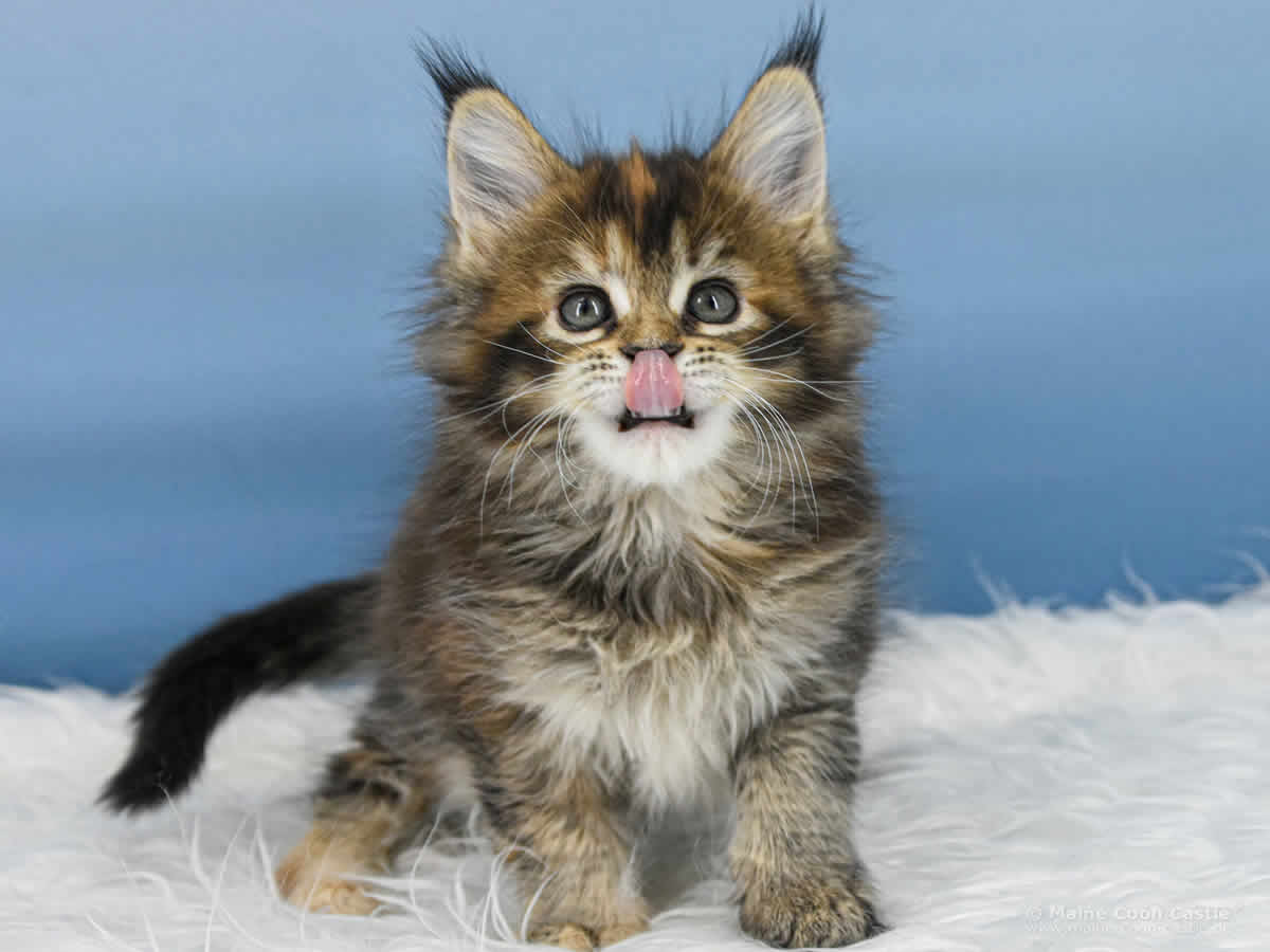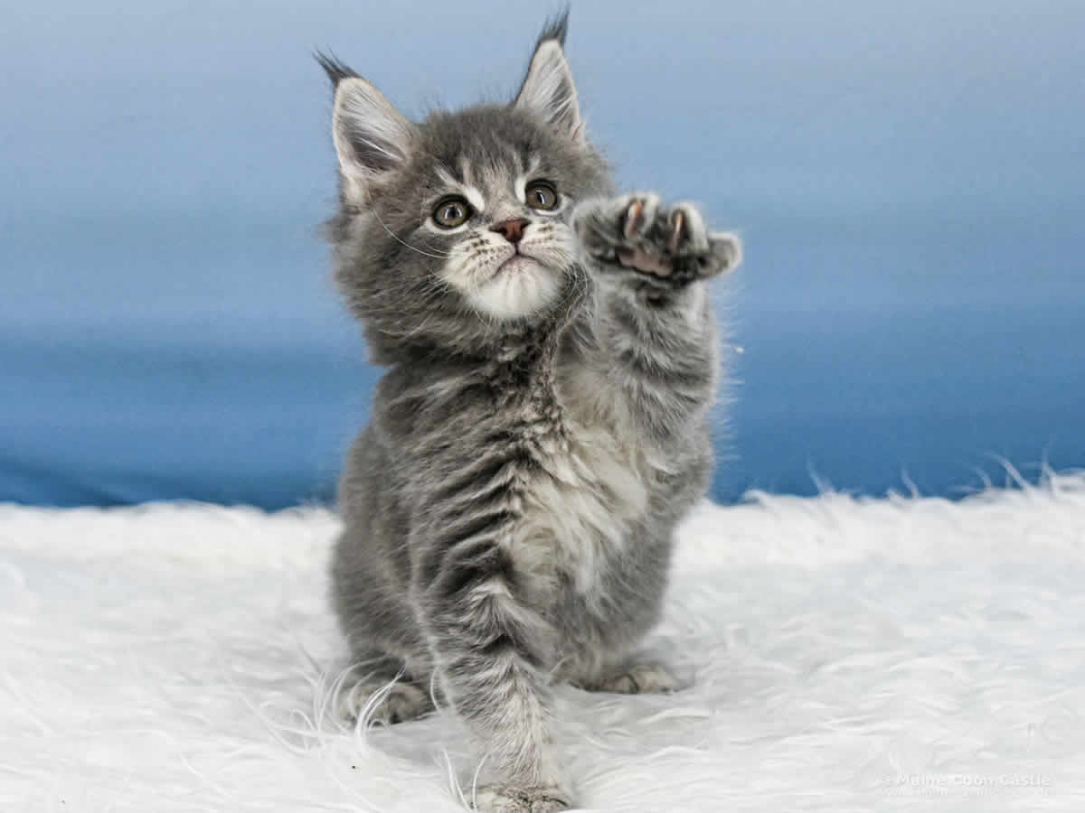 Schon als Kitten sind Maine Coons unglaublich aktiv und neugierig. Sie klettern, springen und erkunden ihre Umgebung mit großer Leidenschaft. Ihre bunten Farben und großen Augen tragen zu ihrem verspielten Aussehen bei und verstärken den Eindruck eines kleinen Abenteurers.