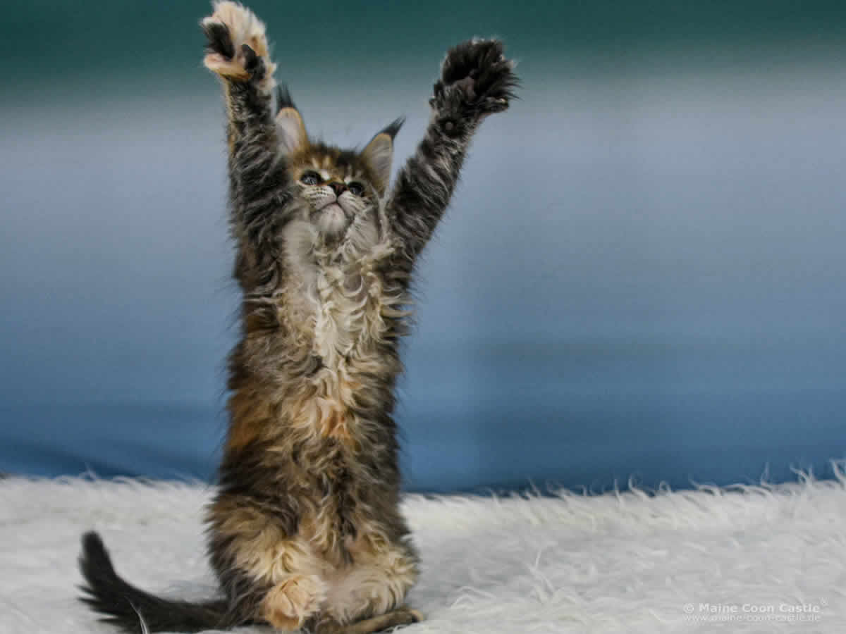Die Bezeichnung „Mini-Ninja“ für bunte Maine Coon Kitten ist ein liebevoll gemeinter Spitzname, der die verspielte und agile Natur dieser kleinen Fellknäule treffend beschreibt. Ihre flinken Bewegungen, ihre Neugierde und ihr Entdeckergeist erinnern an die Geschicklichkeit und Heimlichkeit eines Ninjas.