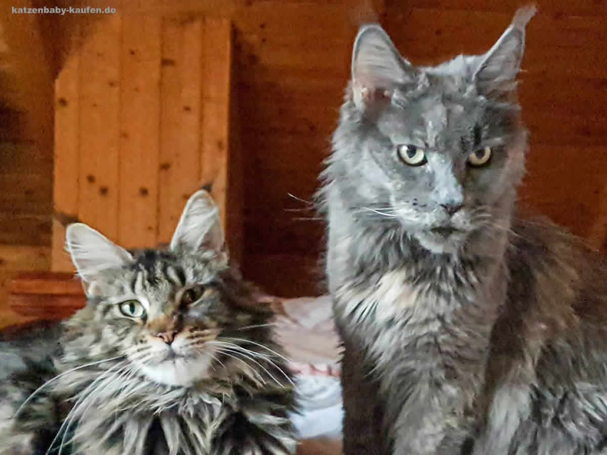 Bereits damals hat die Maine-Coon-Katze Hana die Zeit der Wurfvorbereitung sehr genossen. Sie hat mich vollständig vereinnahmt, aber auch regelrecht mit ihrer Liebe überschüttet. Nachtschlaf wurde zum Fremdwort. Ihre erste Geburt hat Hana sehr instinktsicher fast allein bewältigt. Das Mädel ist vor Stolz fast geplatzt und hat mich oft zum Sturdi gerufen, um mir IHRE Schätze zu zeigen. Die Maine-Coon-Kitten waren wunderschön. Hana war vom ersten Tag an eine wunderbare, fürsorgliche Mutter mit unendlicher Geduld und Nachsicht. Erst später habe ich erkannt, dass diese Eigenschaft ein Merkmal ihrer Zuchtlinie ist und bei Hana besonders ausgeprägt zutage trat. Alle weiblichen Nachfahren dieser Maine-Coon-Zuchtlinie sind fantastische Mütter geworden. Die „Affenliebe“, die Hana und Filly allen Babys entgegenbrachten, ist legendär. Wir durften sehr ergreifende Momente erleben.
