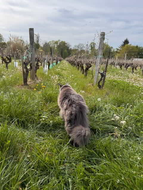 Freitag: Weiterfahrt nach Bordeaux. Chateau „La Gauche“ war unser Platz für die Nacht. Weinberge, so weit das Auge reicht. Endlich Raum für gepflegtes Stängel-Knabbern. Ich bin stolz, zwischen den Reben auf und ab flaniert – très chic. Jürgen sagte, ich sehe aus wie ein kleiner Wildkater. Ich finde: Ich sehe aus wie ein König auf Landbesuch.